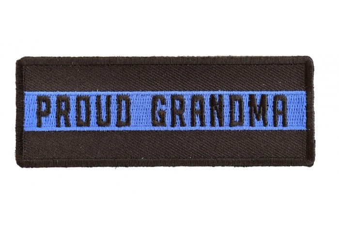 Thin Blue Line Proud Grandma Patch measures 4x1.5 inches and is Embroidered in Black / Blue. The Small Patch can be sewn on or ironed on to clothing such as Denim or Leather Jackets, Vests, Hats, Back Packs, Shirts. Features plastic backing and embroidered die cut borders.