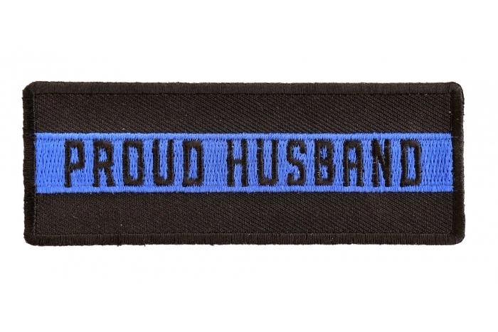 Thin Blue Line Proud Husband Patch measures 4x1.5 inches and is Embroidered in Black / Blue. The Small Patch can be sewn on or ironed on to clothing such as Denim or Leather Jackets, Vests, Hats, Back Packs, Shirts. Features plastic backing and embroidered die cut borders.