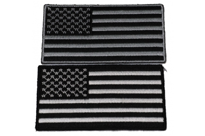 Set of 2 Monochrome American Flag Patches - 3 inches