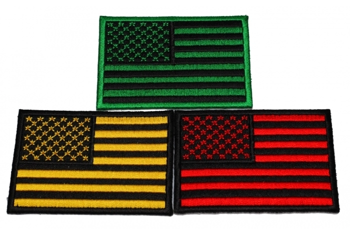 - Set of 3 American Flag Patches in Green Yellow and Red Stripes and Stars