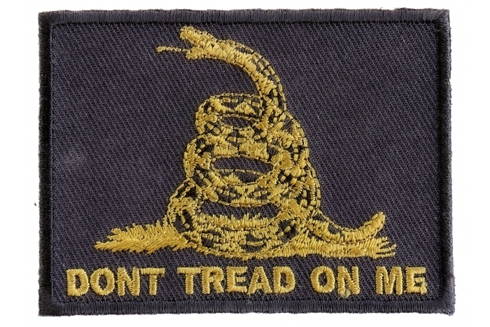 The subdued Don't Tread on me Gadsden flag patch measures 3x2.25 inches. Embroidered in military green over black, the iron on patch measures 3x2.25 inches.