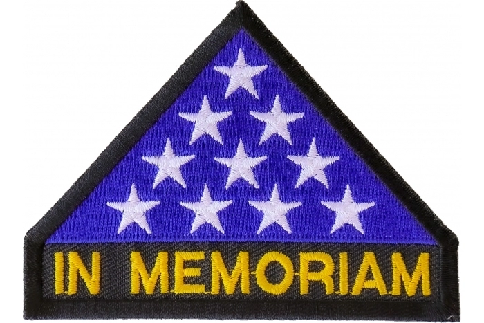 In Memoriam Folded Flag Embroidered Patch. Measuring Size: 3.5X2.5 Inch. The iron on patch is a symbol to commemorate the fallen heroes you've served with. The American flag laid over the casket of a fallen soldier is folded in triangular pattern with the stars facing up before it is handed over to the loved ones.