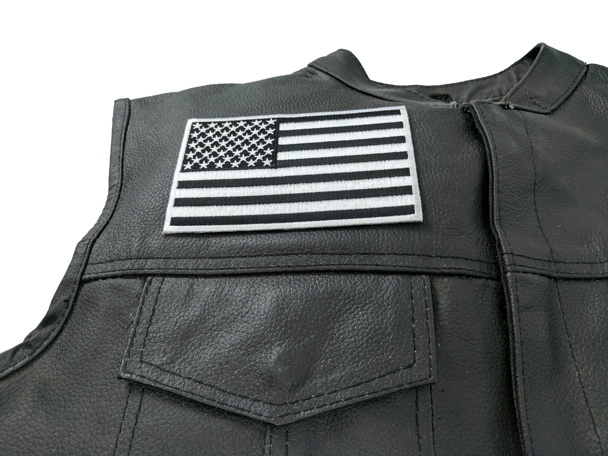 Black and White American Flag Patch with White Borders - 5x3 inch