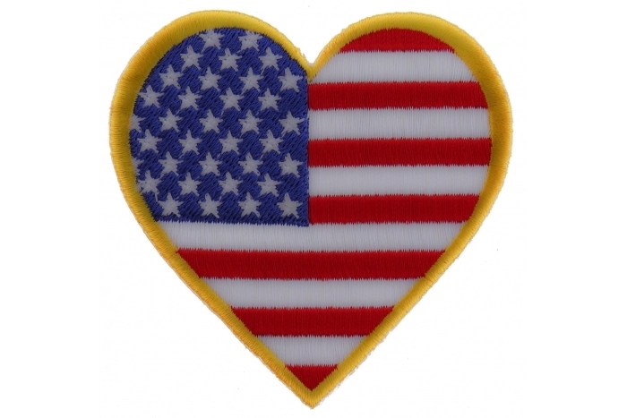Gold Border Love US Flag Heart Patch - 3x3 inch