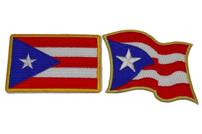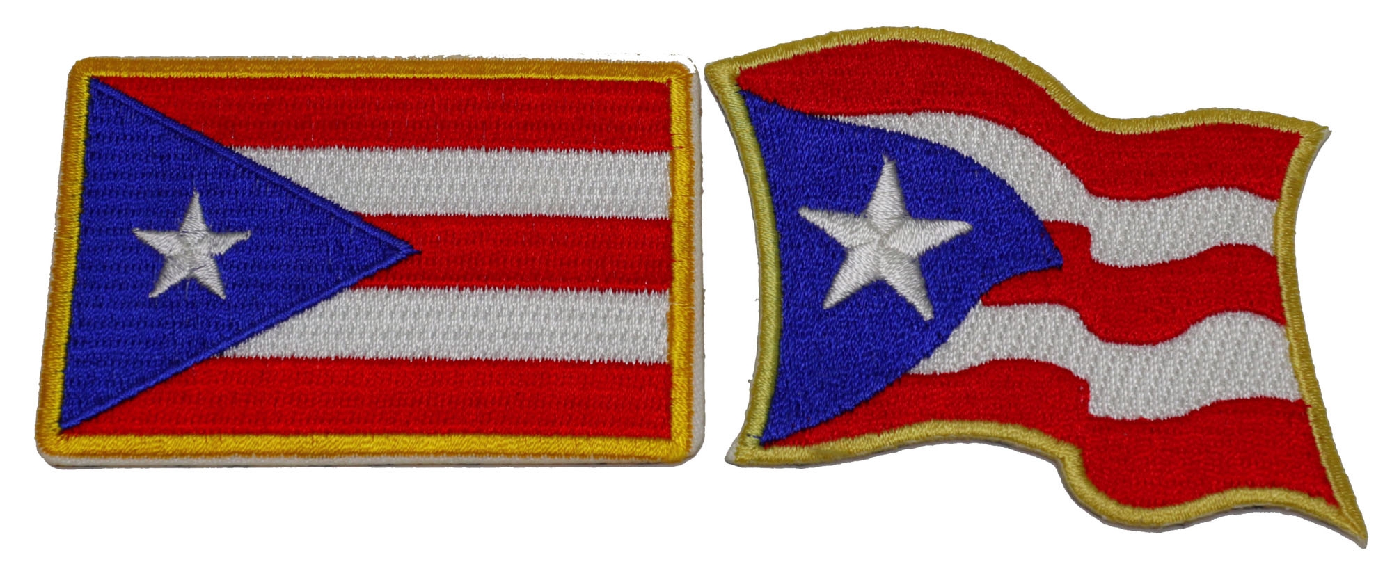 - Set of 2 Puerto Rico Flag Patches Waving and Rectangular