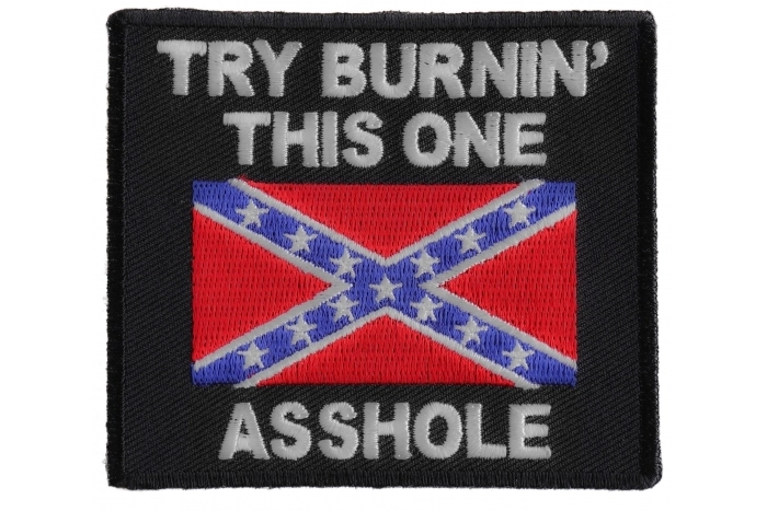 Try Burning This One Asshole Rebel Flag Embroidered Patch.