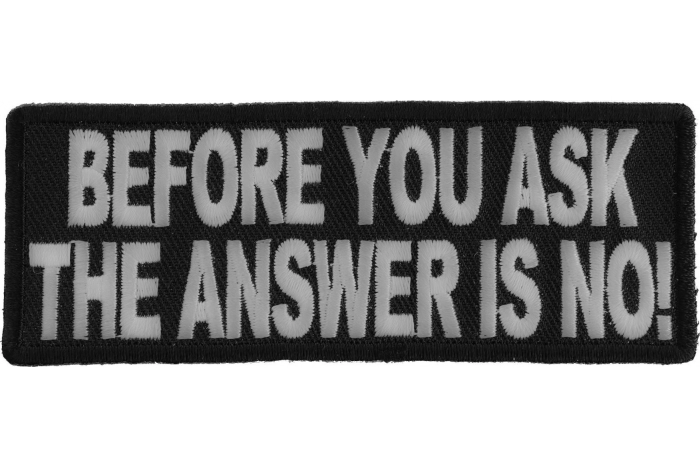 Before You Ask The Answer Is No Funny Iron on Patch - 4x1.5 inch
