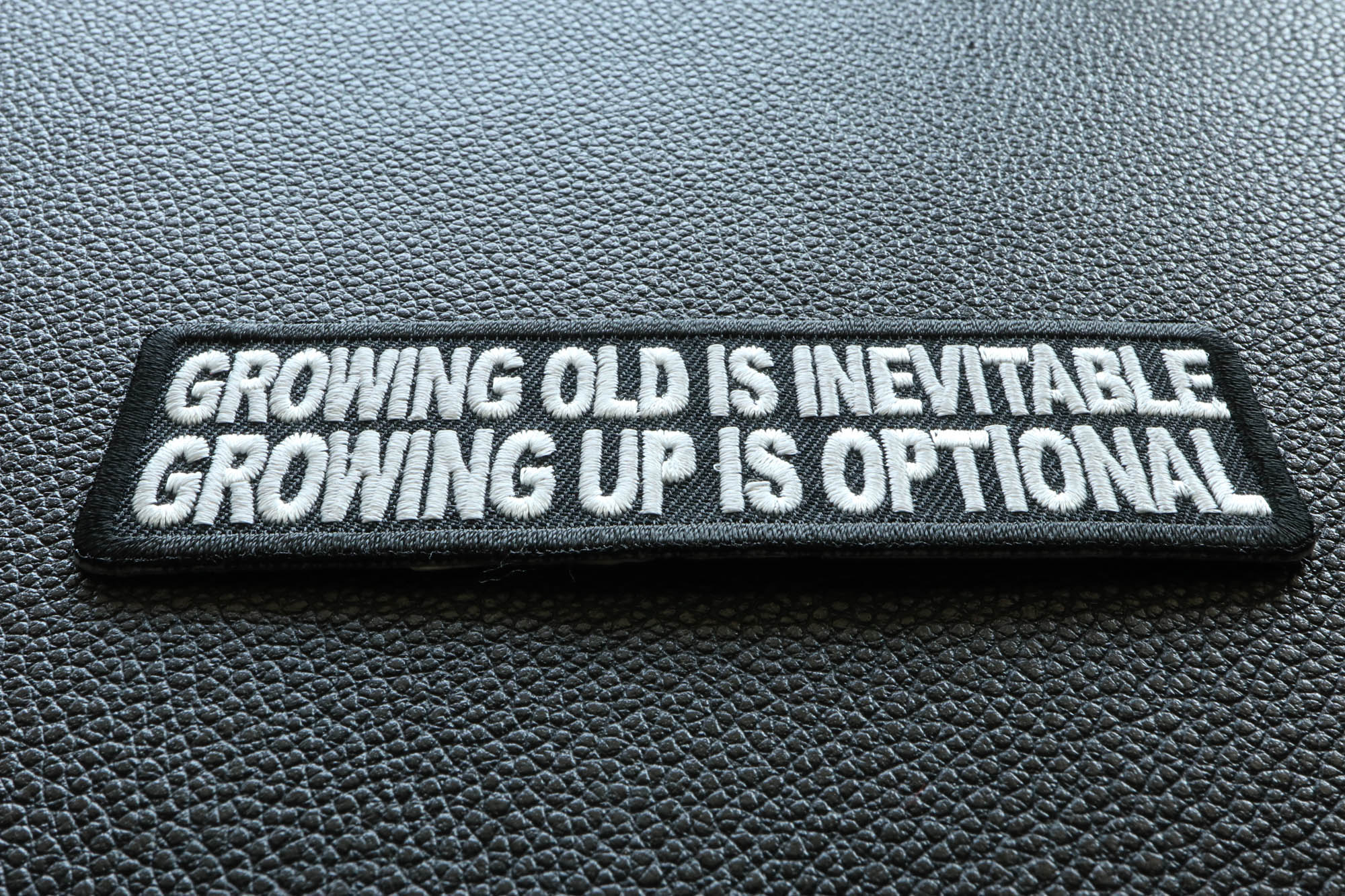 Growing Old Is Inevitable Growing Up Is Optional Funny Iron on Patch - 4x1.25 inch