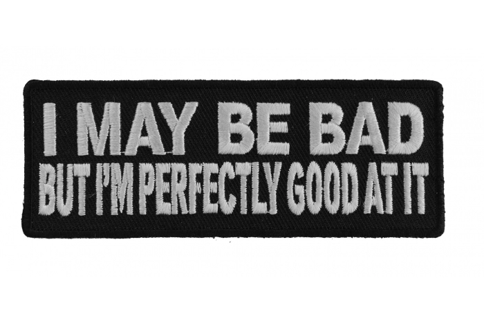 I may be bad but I'm good at it patch is embroidered. Features plastic iron on backing. Measures 4x1.5 inch. Colors used are Black / White The patch can be ironed on or sewed on to your clothing. Please do not iron on patches to leather or nylon material. A heat press is necessary to properly adhere the patch using the iron on method of application. Using a household iron will not produce professional results and the badge will most likely come off after a few washes. Both heat and pressure are a must to properly iron on a patch. We always recommend you sew on these patches to your clothes for a permanent attachment. The die cut borders featured on these emblems makes it very easy for them to be sewn on.