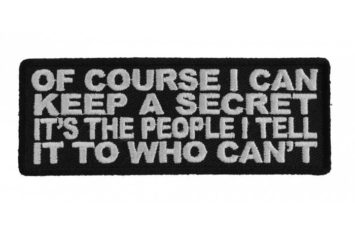 Of course I can keep a secret it's the people I tell it to who can't. The patch is embroidered in white over black twill and measures 4x1.5 inches.