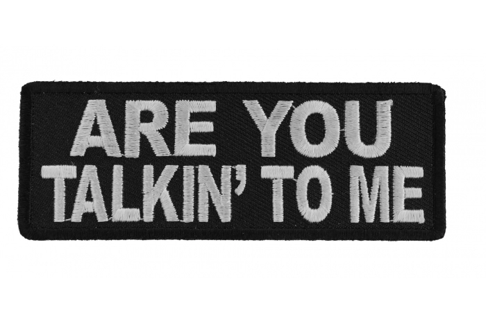 Are you Talkin To Me Patch measures 4x1.5 inches and is Embroidered in Black / White. The Small Patch can be sewn on or ironed on to clothing such as Denim or Leather Jackets, Vests, Hats, Back Packs, Shirts. Features plastic backing and embroidered die cut borders.