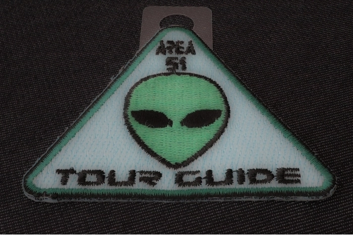 - Area 51 Tour Guide Funny Iron on Patch Alien Head