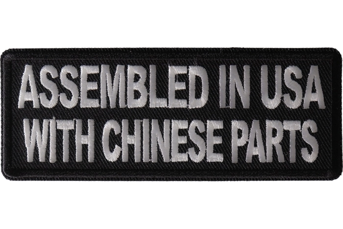 Assembled in USA with Chinese Parts Funny Iron on Patch - 4x1.5 inch