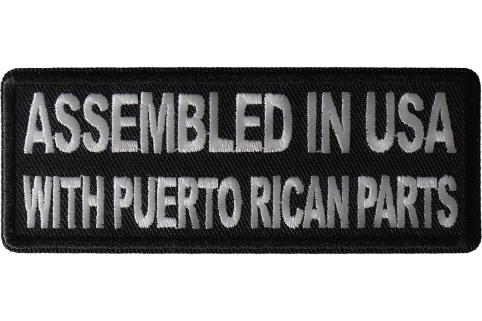 - Assembled in USA with Puerto Rican Parts Funny Iron on Patch
