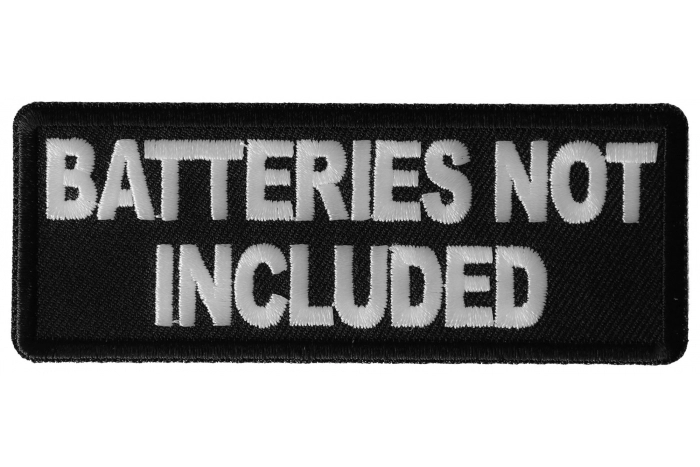 Batteries not Included Funny Iron on Patch - 4x1.5 inch