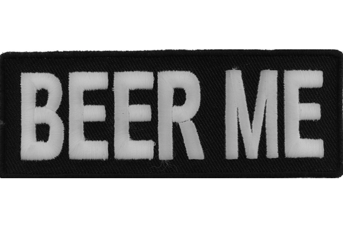 Beer me funny Patch measures 4x1.5 inches and is embroidered in Black / White. You can sew this patch on your leather or nylon jacket. It features die cut borders for easy sewing. We also have treated the plastic backing of this patch with heat activated glue. You can also iron on this patch to your clothing. The plastic iron on backing not only gives you the capability to iron on the patch, but it also helps keep the stitches together over time. This is another quality embroidered iron on patch from The Cheap Place. Please refrain from ironing on patches to leather or nylon. Since we cater mainly to Bikers who get them sewn on leather we make sure all our patches feature single color borders for easy sew on application.