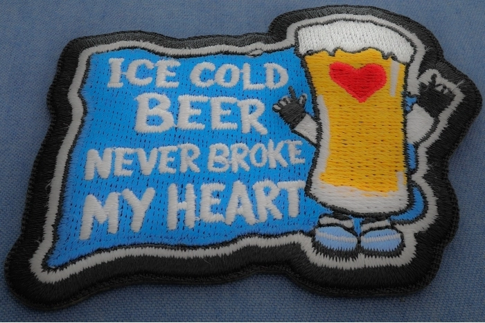 Ice Cod Beer Never Broke My Heart Patch measures 3x3 inches and is Embroidered in Black / Red / Yellow / Blue. The patch can be sewn on to Leather Biker Jackets, Vests or Chaps. The patch can also be ironed on to Shirts, Hats or Denim material such as Jeans. Features plastic iron on backing and clean laser cut embroidered borders. Japanese made iron on glue requires temperature between 270-290 Degrees Fahrenheit. Use a heat press for 30 seconds to adhere the patch permanently to your clothing. Using a regular household iron will probably not be as permanent as one hopes. If possible we recommend you sew on your patches for a more durable application. Never iron on patches to Leather or Nylon materials.