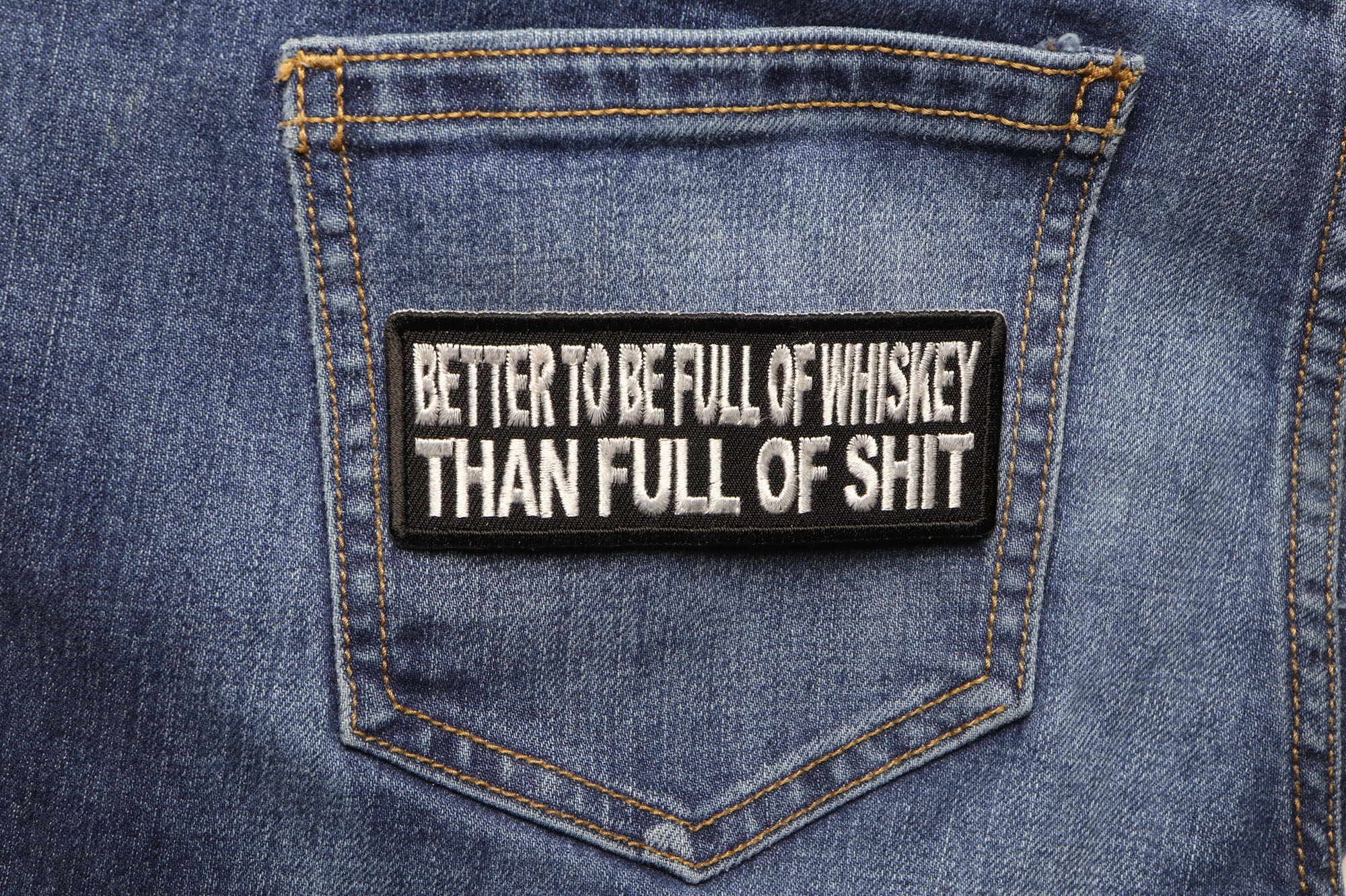 Better To Be Full Of Whiskey Than Full of Shit Funny Iron on Patch - 4x1.5 inch