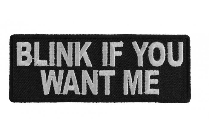 Blink if you want me Patch is embroidered in Black / White. Measures 4x1.5 inches. The patch can be sewn or ironed on. Do not iron on patches to leather or nylon material. Buy them cheaper with a wholesale account. Resell them on Ebay.