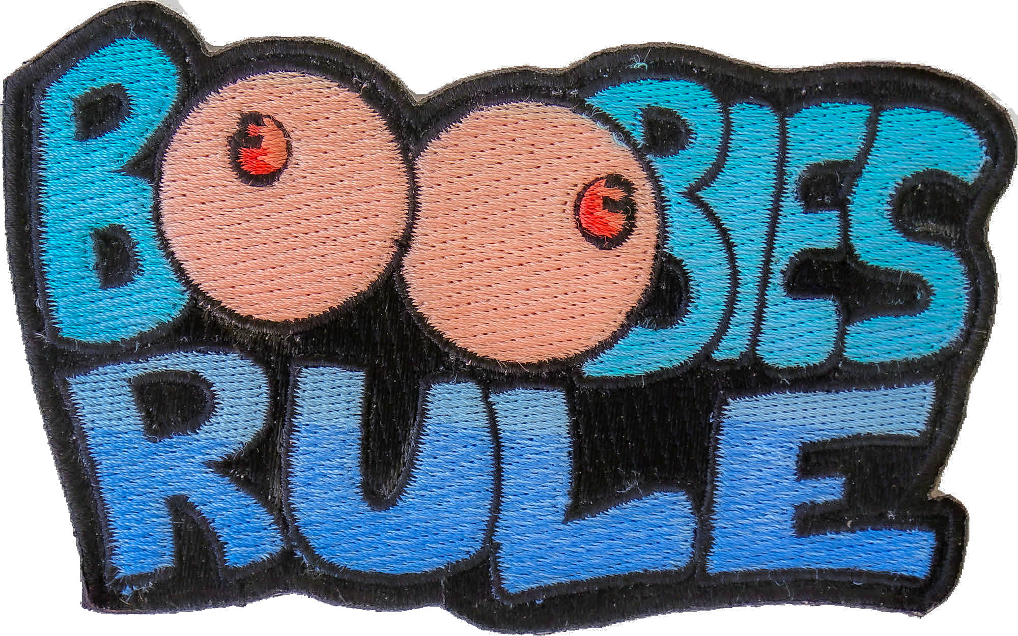 Boobies Rule Funny Iron on Patch - 4x2.4 inch