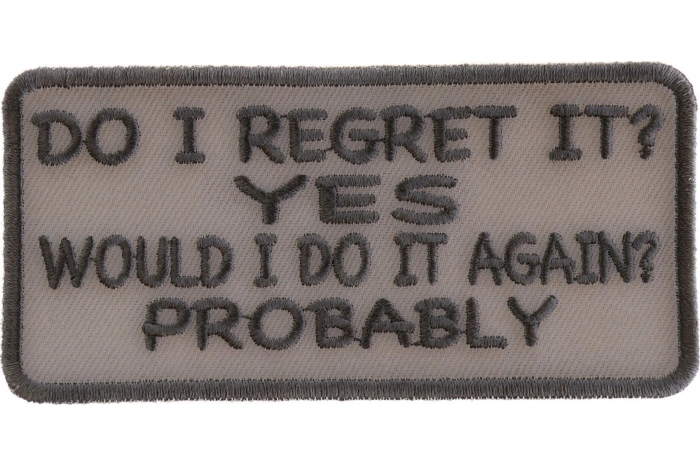 - Do I Regret It Yes Would I Do It Again Probably Funny Iron on Patch