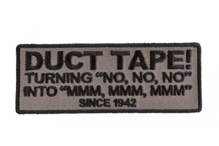 Duct Tape Turning No No Patch in Gray is embroidered in Gray / Black. Measures 4x1.5 inches. The patch can be sewn or ironed on. Do not iron on patches to leather or nylon material. Buy them cheaper with a wholesale account. Resell them on Ebay.