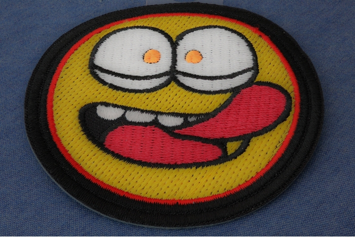 We have seen funnier embroidered patches before. This one isn't the funniest we've seen, but it's still pretty good. It depicts a big, round face with bug eyes and a tongue sticking out. It is enough to remind anyone of how their kids made funny faces when they were toddlers. Heck, some of those kids learned their funny faces from mom and dad.