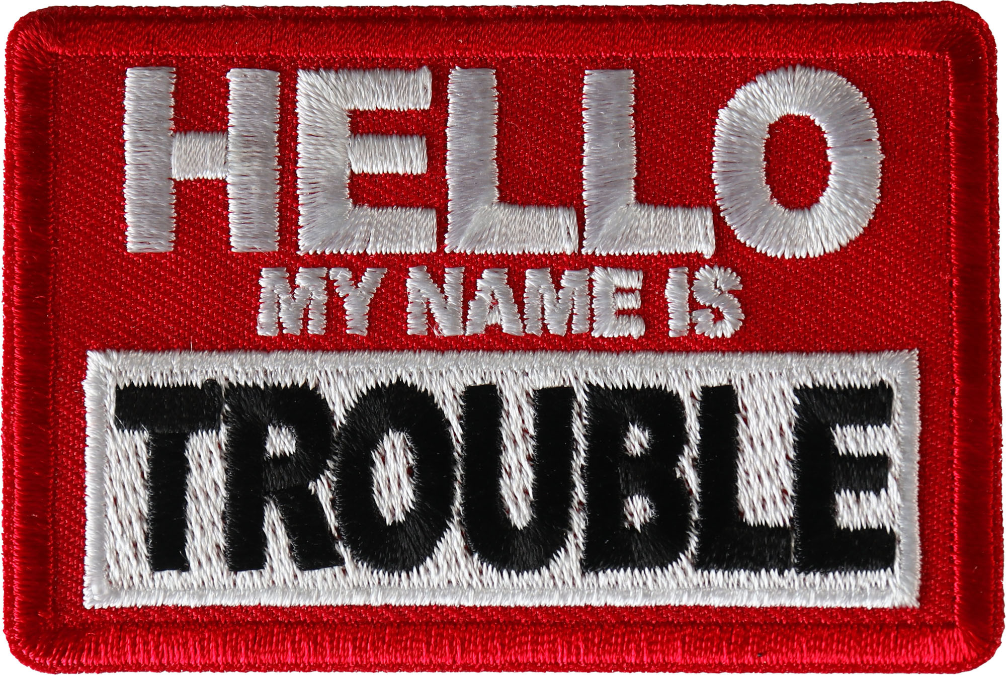Hello My Name is Trouble Funny Iron on Patch - 3x2 inch