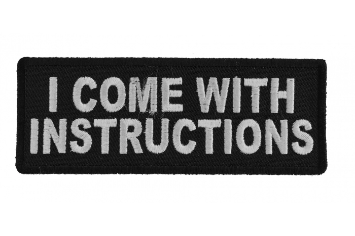 I Come With Instructions Funny Iron on Patch - 4x1.5 inch