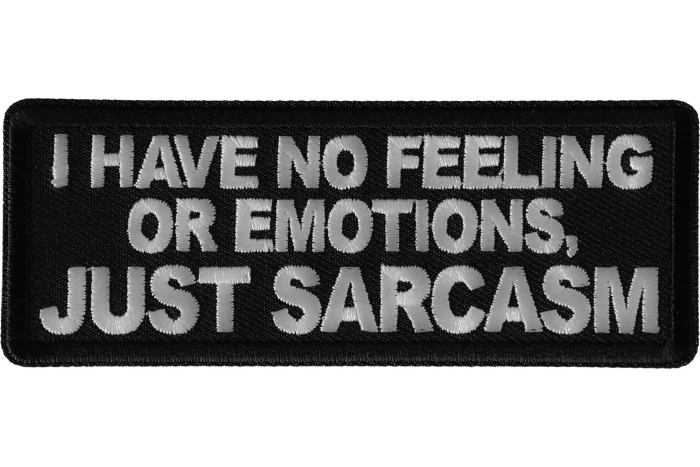 I have no feeling or emotions, Just Sarcasm Funny Iron on Patch - 4x1.5 inch