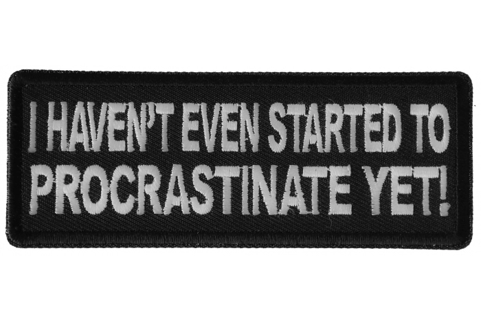I haven't Even Started to Procrastinate Yet Patch measures 4x1.5 inches and is Embroidered in Black / White. The Small Patch can be sewn on or ironed on to clothing. You should sew patches on to leather jackets or vests. Refrain from ironing on patches to nylon or leather material. The correct iron on temperature is 270 degrees Fahrenheit. If you are using a household iron you should press down for 30 seconds. If you are using a heat press 12 seconds is sufficient. The patch features clean cut embroidered borders