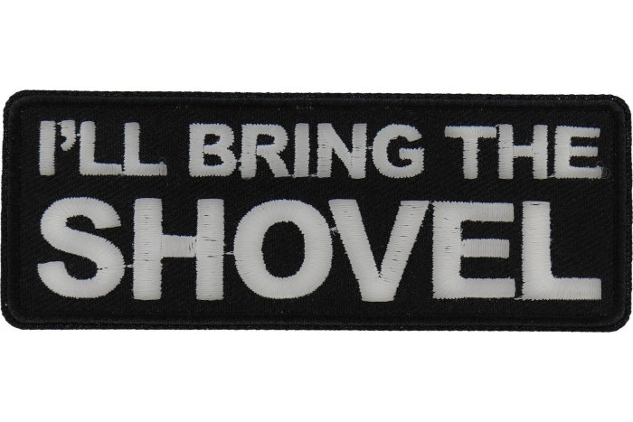 I'll Bring the Shovel Iron on Patch measures 4x1.75 inches and is Embroidered in Black / White. The patch can be sewn on to Leather Biker Jackets, Vests or Chaps. The patch can also be ironed on to Shirts, Hats or Denim material such as Jeans. Features plastic iron on backing and clean laser cut embroidered borders. Japanese made iron on glue requires temperature between 270-290 Degrees Fahrenheit. Use a heat press for 30 seconds to adhere the patch permanently to your clothing. Using a regular household iron will probably not be as permanent as one hopes. If possible we recommend you sew on your patches for a more durable application. Never iron on patches to Leather or Nylon materials.