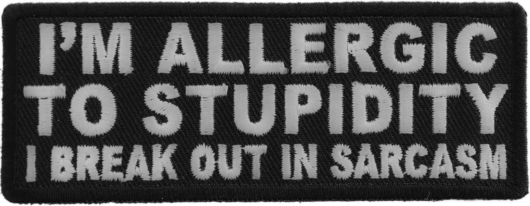 I'm Allergic To Stupidity I Break Out In Sarcasm Funny Iron on Patch - 4x1.5 inch