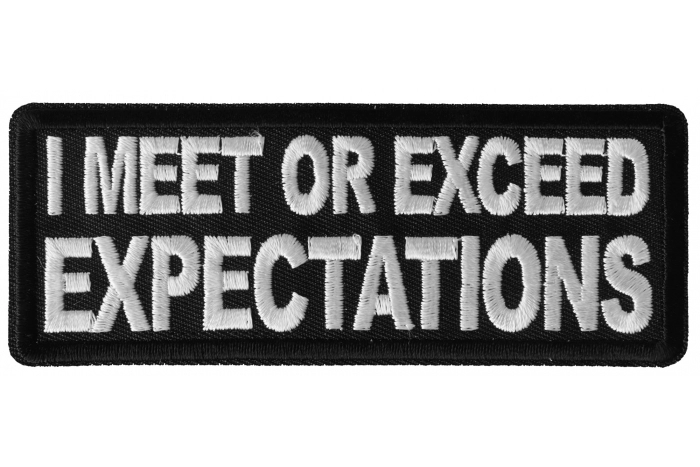 I Meet or Exceed Expectations Funny Iron on Patch - 4x1.5 inch