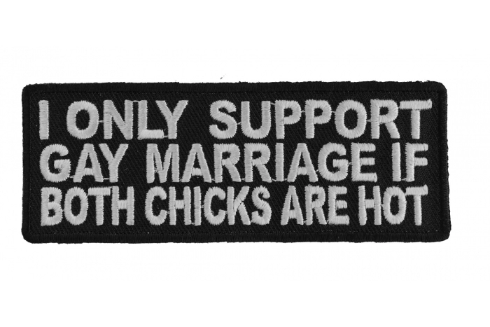 I only support gay marriage if both chicks are hot patch is an embroidered iron on patch measuring 4x1.5 inch. Apply to your clothing by ironing or sewing it on. Please do not iron on patches to leather or nylon material. The patch features a nice embroidered die cut border making it easy to sew on when ironing on is not an option. Please remember using a household iron will not produce professional results. Both heat and pressure is required to adhere an iron on patch properly to a garment. We always recommend you sew on your patches.
