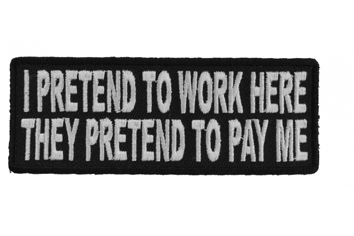 I Pretend To Work Here, They Pretend To Pay Me Funny Patch - 4x1.5 inch