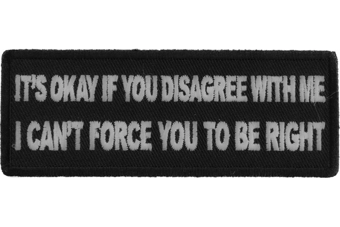 It's Okay if You Disagree with Me I can't Force You to Be Right Funny Iron on Patch - 4x1.5 inch
