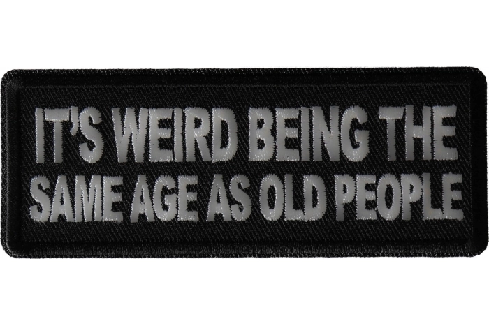 Well, it doesn't have to be weird anymore. If you have finally reached 'old person' status, you can laugh about it with the It's Weird Being the Same Age As Old People biker patch. The statement says it all. It is an admission that you have become the person you thought was ancient when you were 10 or 12 years old.