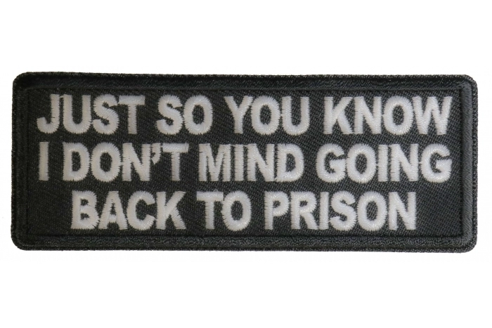 - Just So You Know I don't Mind Going Back to Prison Funny Iron on Patch