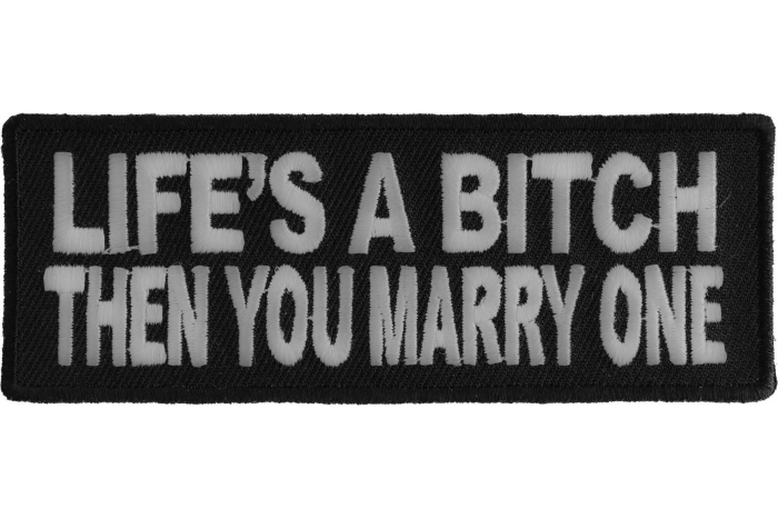 Life's A Bitch Then You Marry One Funny Iron on Patch - 4x1.5 inch