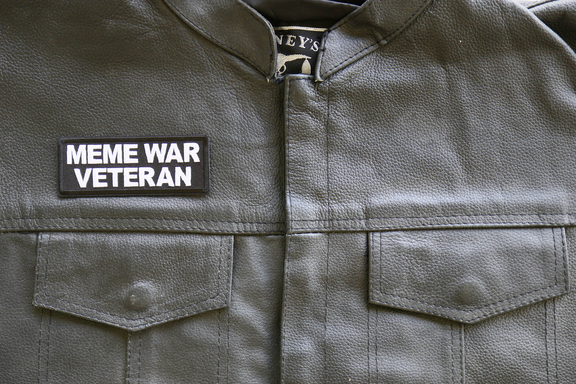 Meme War Veteran Iron on Patch measures 4x1.5 inches and is Embroidered in Black / White. The patch can be sewn on to Leather Biker Jackets, Vests or Chaps. The patch can also be ironed on to Shirts, Hats or Denim material such as Jeans. Features plastic iron on backing and clean laser cut embroidered borders. Japanese made iron on glue requires temperature between 270-290 Degrees Fahrenheit. Use a heat press for 30 seconds to adhere the patch permanently to your clothing. Using a regular household iron will probably not be as permanent as one hopes. If possible we recommend you sew on your patches for a more durable application. Never iron on patches to Leather or Nylon materials.