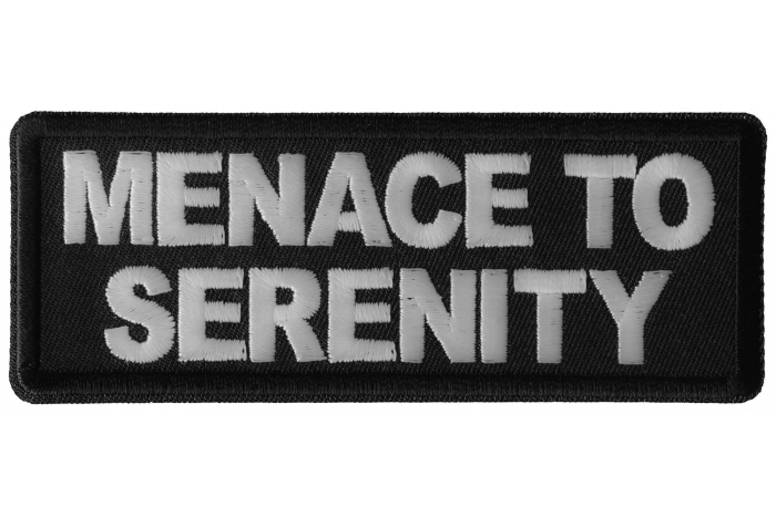 Menace to Serenity Patch measures 4x1.5 inches and is Embroidered in Black / White. The Small Patch can be sewn on or ironed on to clothing. You should sew patches on to leather jackets or vests. Refrain from ironing on patches to nylon or leather material. The correct iron on temperature is 270 degrees Fahrenheit. If you are using a household iron you should press down for 30 seconds. If you are using a heat press 12 seconds is sufficient. The patch features clean cut embroidered borders