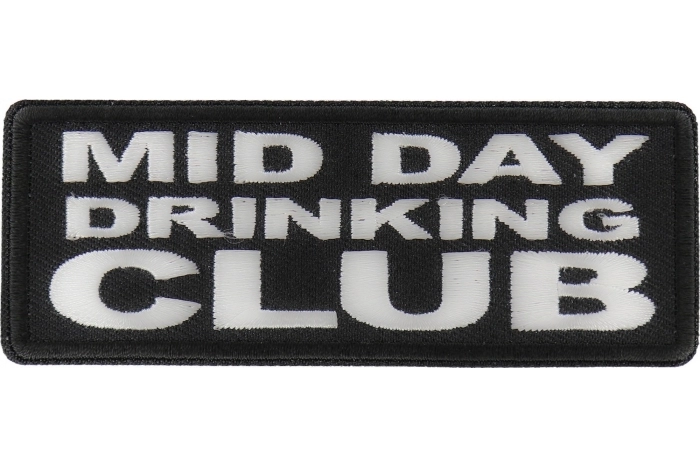 Mid Day Drinking Club Patch measures 4x1.5 inches and is Embroidered in Black / White. The patch can be sewn on to Leather Biker Jackets, Vests or Chaps. The patch can also be ironed on to Shirts, Hats or Denim material such as Jeans. Features plastic iron on backing and clean laser cut embroidered borders. Japanese made iron on glue requires temperature between 270-290 Degrees Fahrenheit. Use a heat press for 30 seconds to adhere the patch permanently to your clothing. Using a regular household iron will probably not be as permanent as one hopes. If possible we recommend you sew on your patches for a more durable application. Never iron on patches to Leather or Nylon materials.