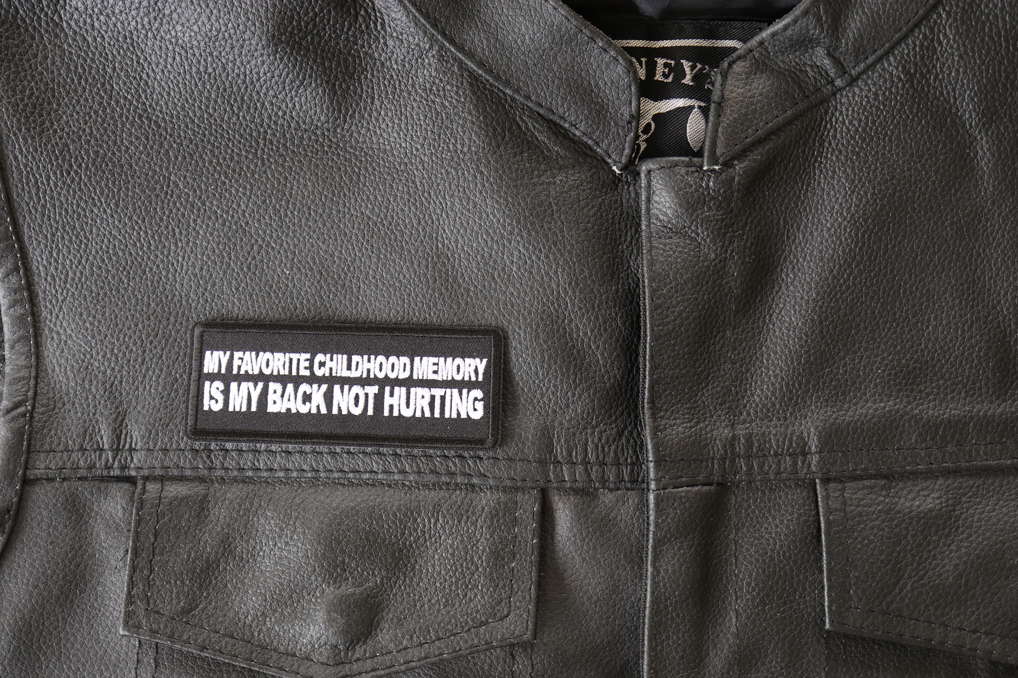 My Favorite Childhood Memory is My Back Not Hurting Funny Iron on Patch - 4x1.5 inch