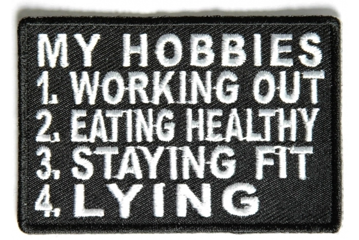My Hobbies include Lying Patch is embroidered in Black / White. Measures 3x2 inches. The patch can be sewn or ironed on. Do not iron on patches to leather or nylon material. Buy them cheaper with a wholesale account. Resell them on Ebay.