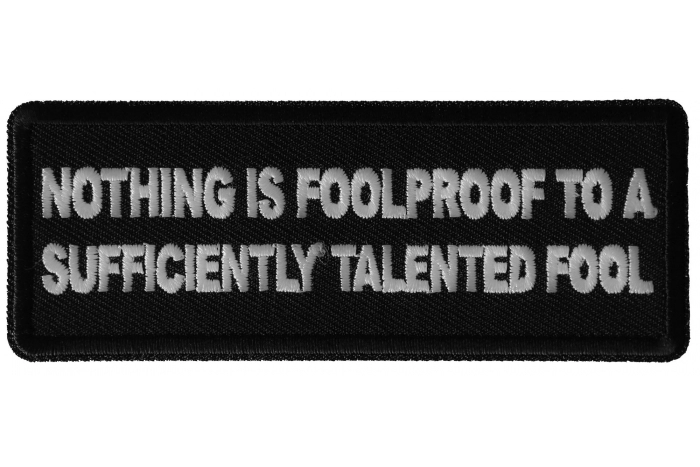- Nothing is Foolproof to a Sufficiently Talented Fool Funny Iron on Patch