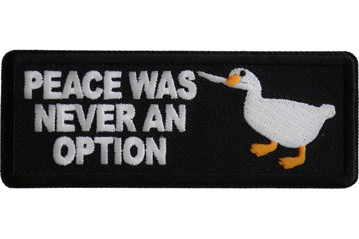 Peace Was Never an Option Duck with Knife Iron on Patch - 4x1.5 inch