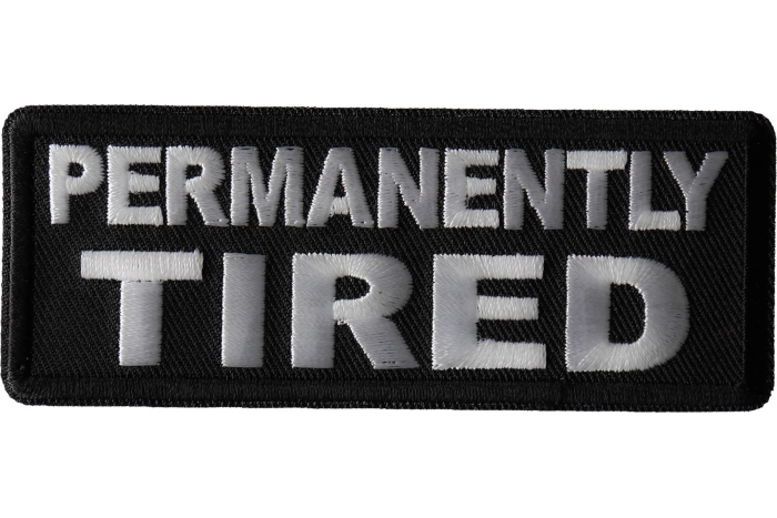 Attention all of you bikers and embroidered patch lovers who are perpetually worn out. We have a brand-new patch just for you. Its message is as plain and simple as it could be. Here's what it says: 'Permanently Tired'.