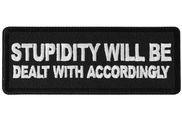 Stupidity will be Dealt with Accordingly Funny Iron on Patch - 4x1.5 inch