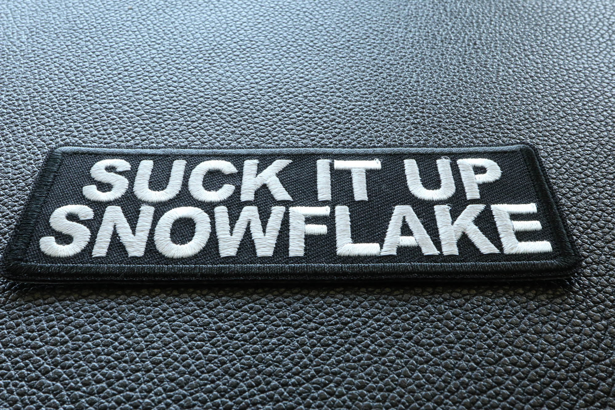 Suck it Up Snowflake Funny Iron on Patch - 4x1.5 inch